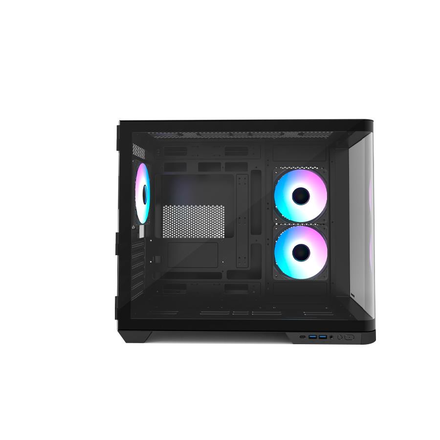 Atributos Tempered Glass Front & Side one-pies Panel ( Fish Tank) medidas 446 x 378 x 547 PREINSTALLED FAN(s) 3 Fans: M/B Side: 2 x 120mm ARGB Reversed Blade & Rear: 1 x 120mm ARGB Support VGA Support Up to 400m VGA Card / Type-C x 1
